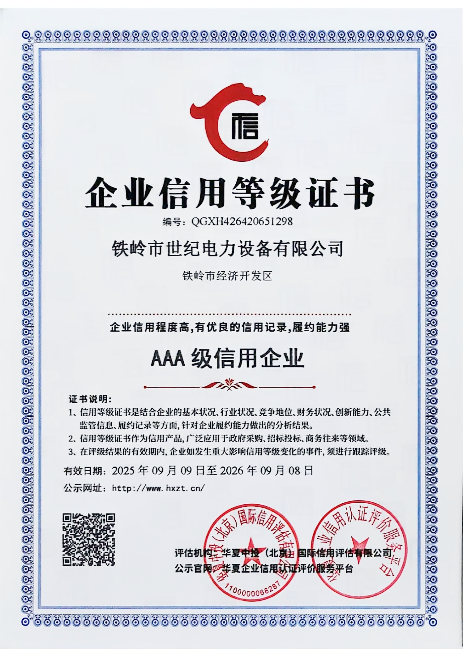 鐵嶺市世紀(jì)電力設(shè)備有限公司是集科研開發(fā)、生產(chǎn)制造、用戶服務(wù)于一體的國(guó)家高新技術(shù)企業(yè),始建于1999年,位于鐵嶺經(jīng)濟(jì)開發(fā)區(qū),占地面積5萬(wàn)余平方米,建筑面積2萬(wàn)余平方米。主要從事國(guó)家電網(wǎng)配套戶外高低壓隔離開關(guān)、電力電纜、變壓器成套裝置、高低壓開關(guān)柜、箱式變電站、絕緣子等產(chǎn)品的研發(fā)、生產(chǎn)和銷售。公司現(xiàn)有國(guó)家發(fā)明專利6項(xiàng)、實(shí)用新型專利9項(xiàng),公司通過了ISO9001國(guó)際質(zhì)量管理體系認(rèn)證、ISO14001環(huán)境管理體系認(rèn)證和ISO 45001職業(yè)健康安全體系認(rèn)證。